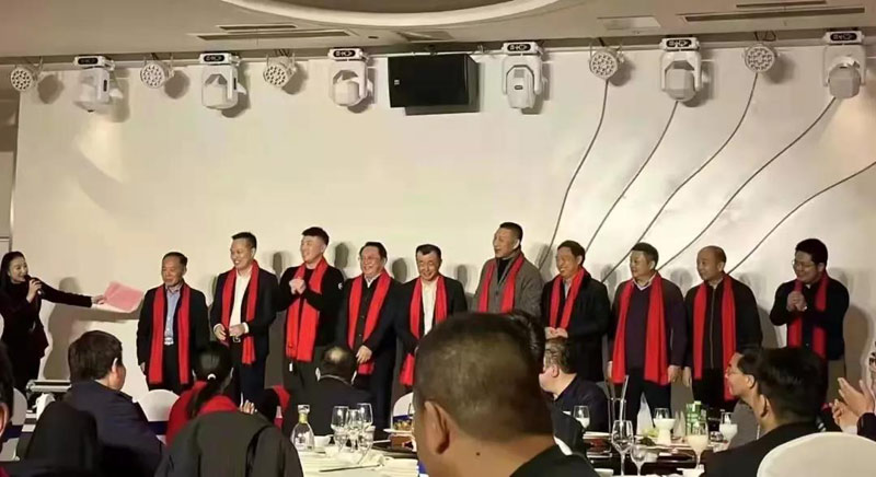 聯誼會上,王義宏、王加安、景濃、陳志才、吳龍鐵等相關方面代表登臺集體向大家拜年